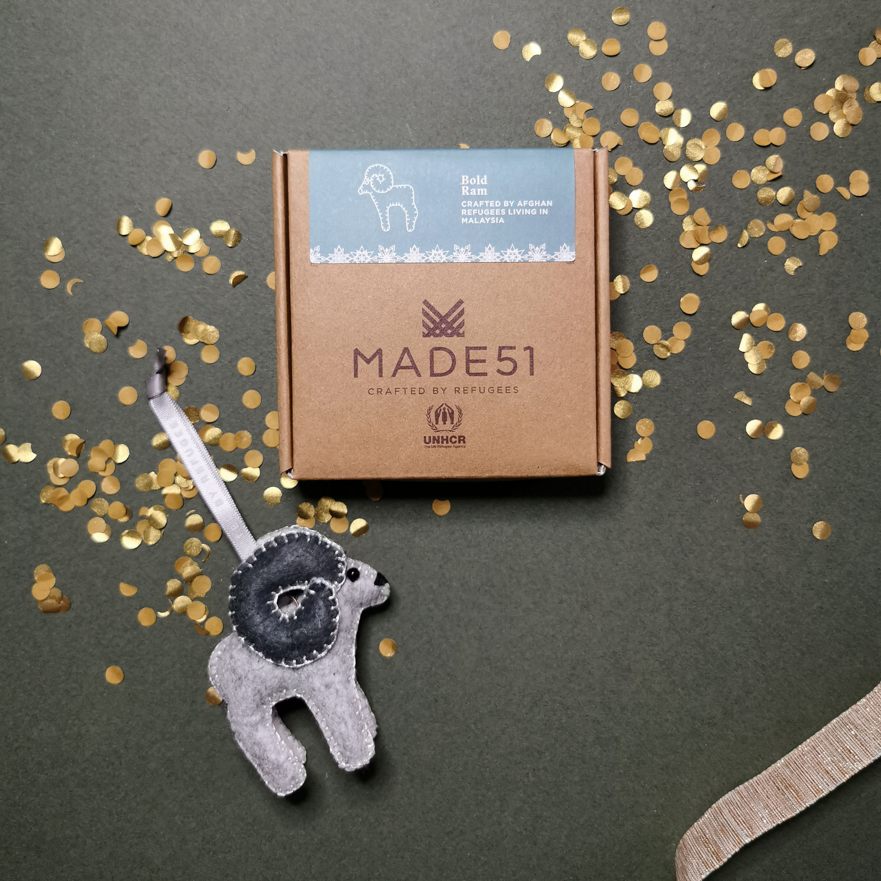 The Bold Ram ornaments are crafted by Afghan refugees living in Malaysia. This little ram is inspired by the Urial, a wild sheep that is native to the artisan’s homeland. The ram is known to be a bold and resilient creature, ready to take on life’s challenges.