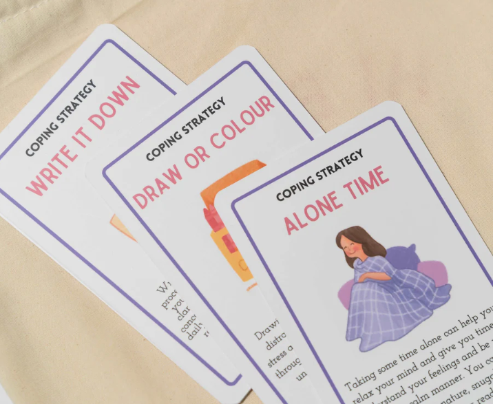 • 18 Coping Strategy Cards: Techniques for managing emotions with calming exercises and affirmations