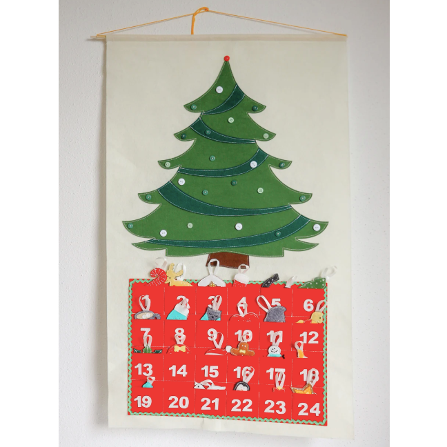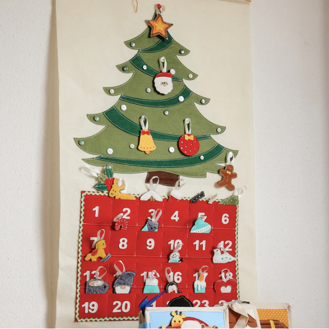 Made of entirely sewn on felt with no glued parts and hung by a wooden pole, this advent calendar is an heirloom made for the magic that is Christmas.