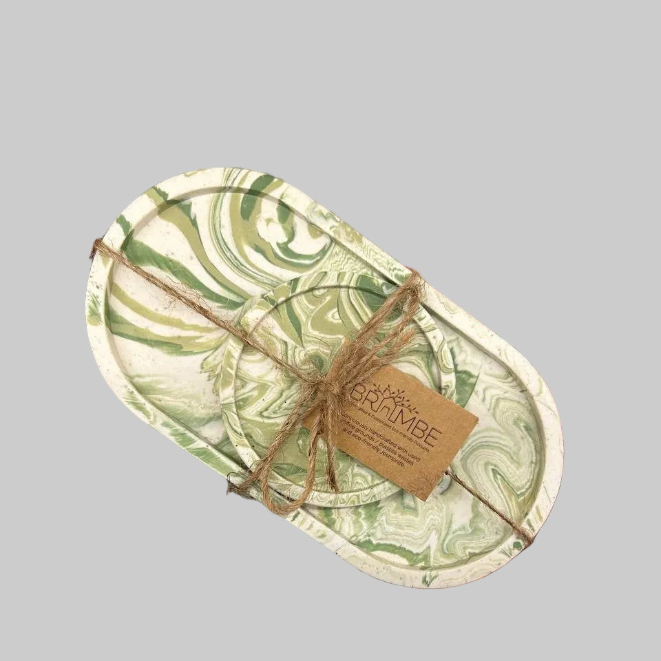This coordinated tray and coaster set combines form and function. The tray provides a sturdy base for serving or display, while the matching coasters help protect surfaces from heat and moisture - perfect for both hosting and everyday use.