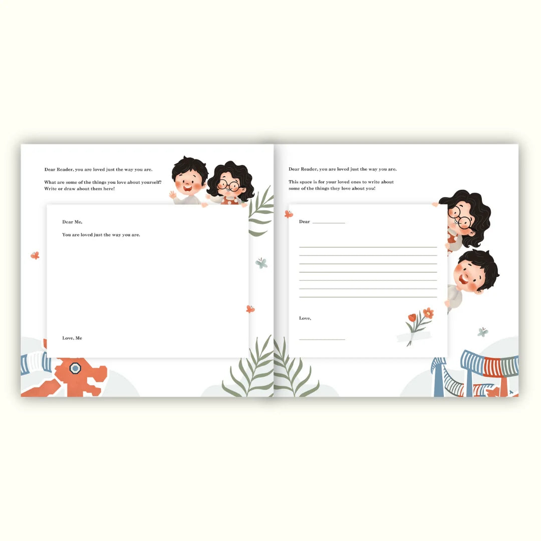 2 guided reflection pages for children and caregivers to write what they love and appreciate about the child