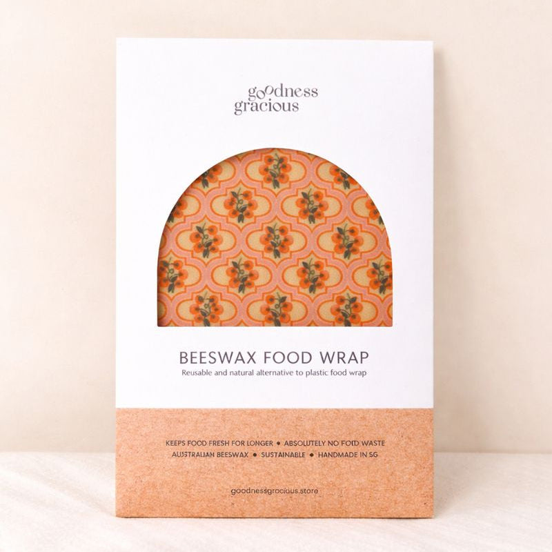 Beeswax wraps are a reusable, eco-friendly alternative to plastic wrap. Simply use the warmth of your hands to mold the wrap around food, bowls, or containers. It sticks best to itself and works well for cheese, veggies, fruit, bread, and herbs. After use, place in the fridge to firm up and keep food fresh. Avoid using with raw meat or seafood. To clean, rinse with cold water and mild soap, then air dry.