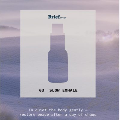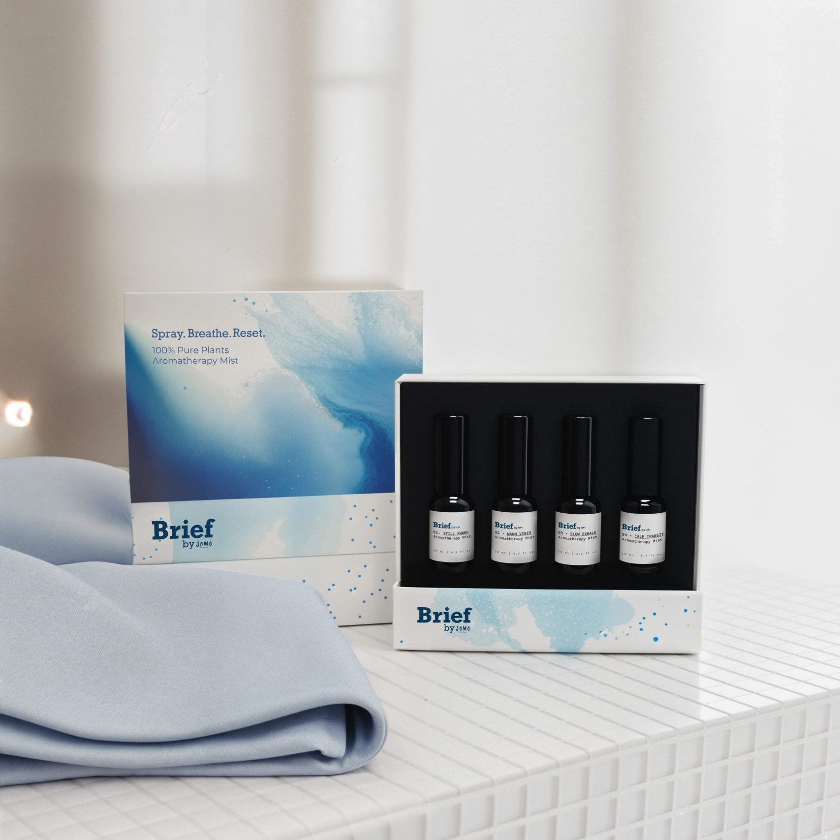 BRIEF is a collection of four aromatherapy mists made with pure essential oils - real extracts from plants, leaves, and flowers that work quietly to calm your mind and steady your emotions.